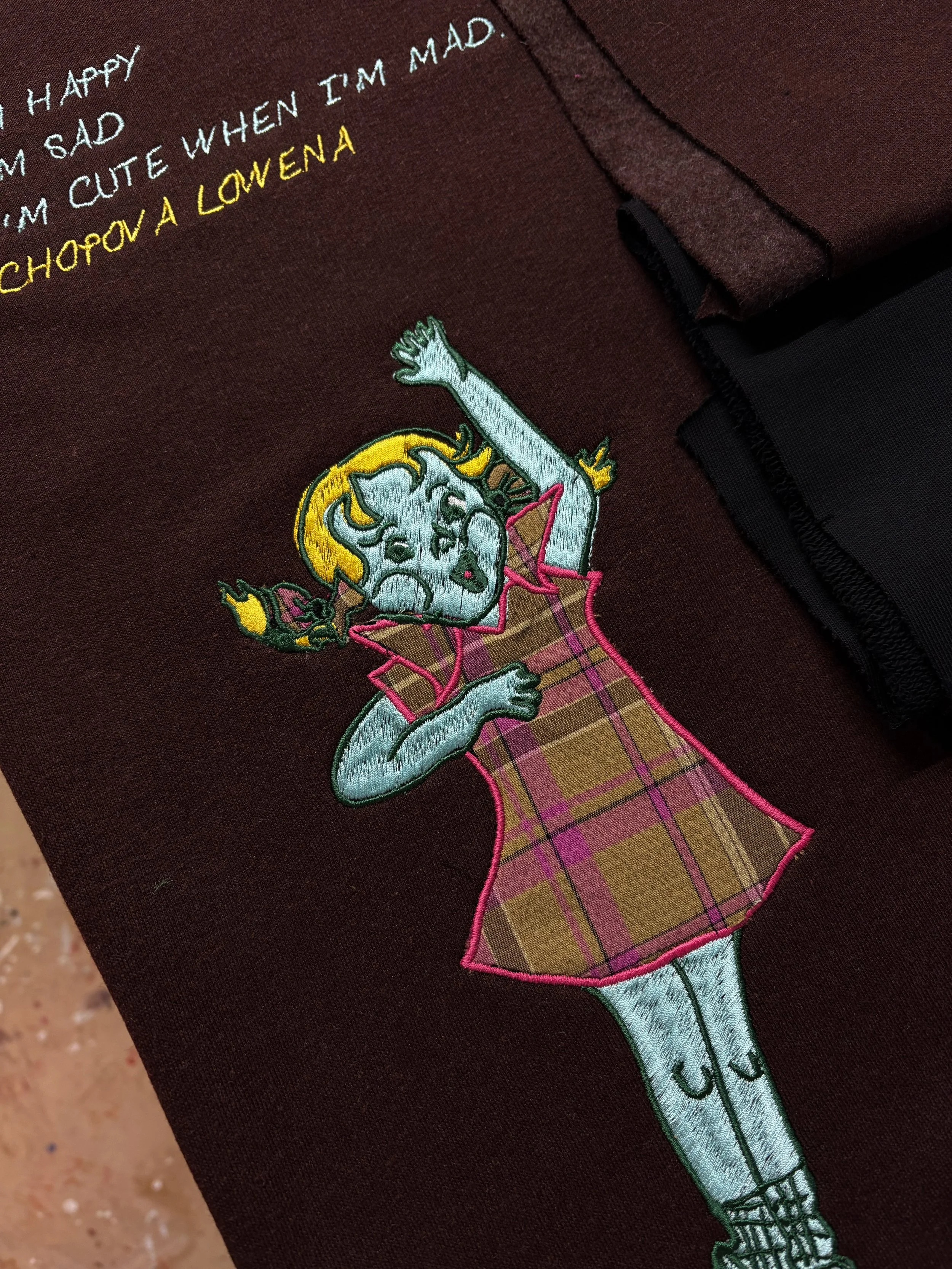 Embroidery for Chopova Lowena’s AW26 collection ‘Too Ripe and Ready By Half.’