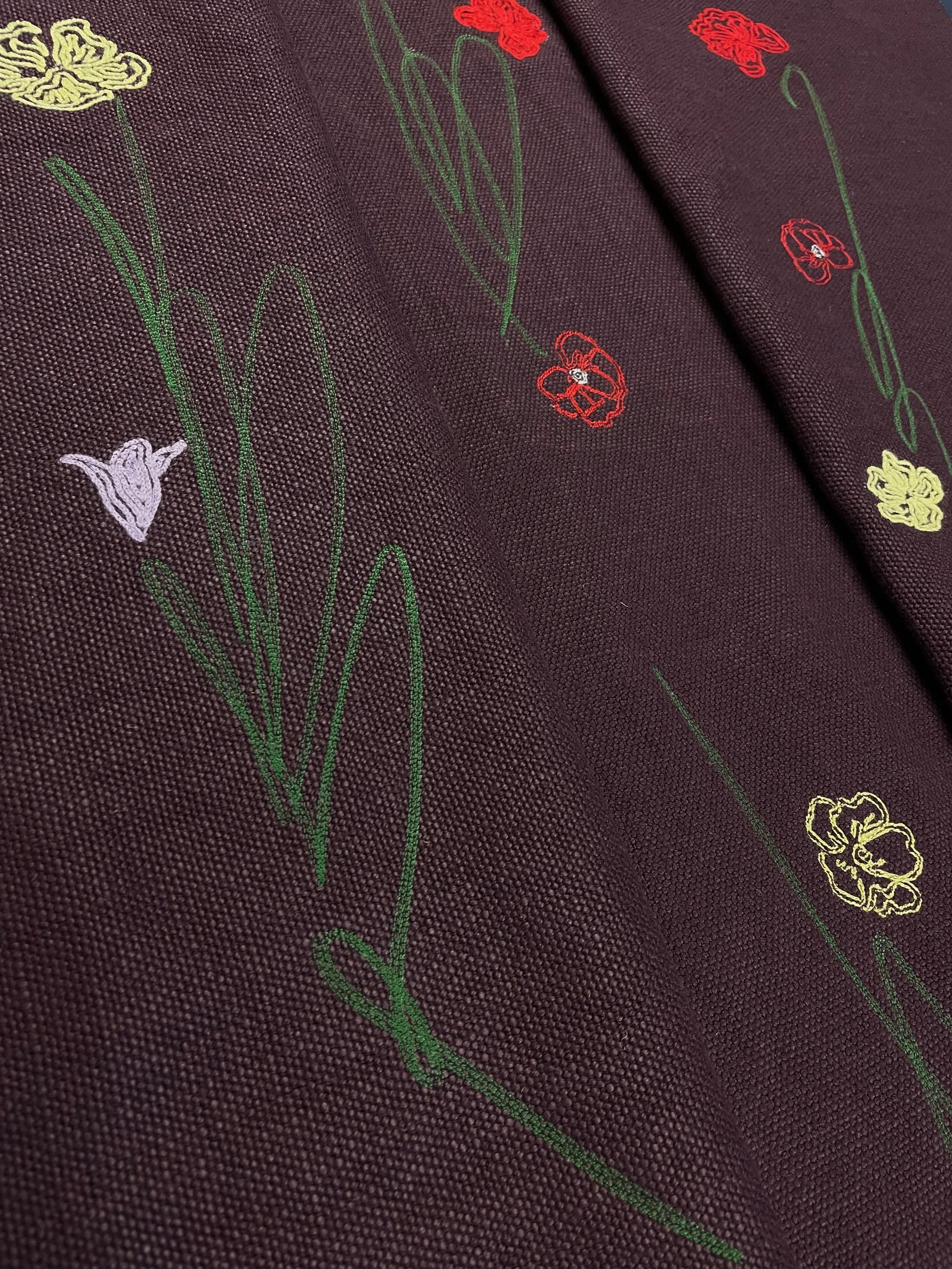 Working with furniture designers Wilkinson & Rivera, we embroidered two bespoke sofas with floral motifs. Each piece was crafted using maze, contour and backstitch to create a soft texture to the design.